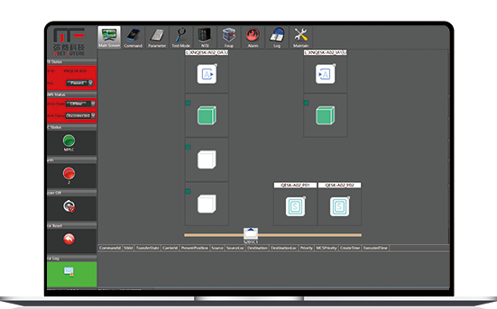 具有智能、高效、稳定、专业等特点的NTB监控软件,给予对无尘室存储库的智能化管理功能,顺利获得HSMS标准协议接收来自客户上位系统如MCS或EAP下发的搬运指令,实现FOUP的存取动作。顺利获得E84 实现与标准LoadPort 或者Sort 设备对接。